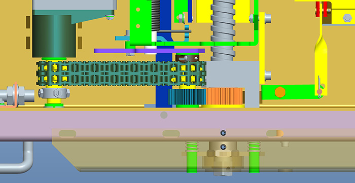 當電動底盤車移動到試驗位或工作位后,銷釘連接在絲桿上的撥塊1會壓下連桿2或連桿3使相應的輔助開關狀態發生改變,控制裝置監測到此信號后會控制電機停止轉動完成電動操作。